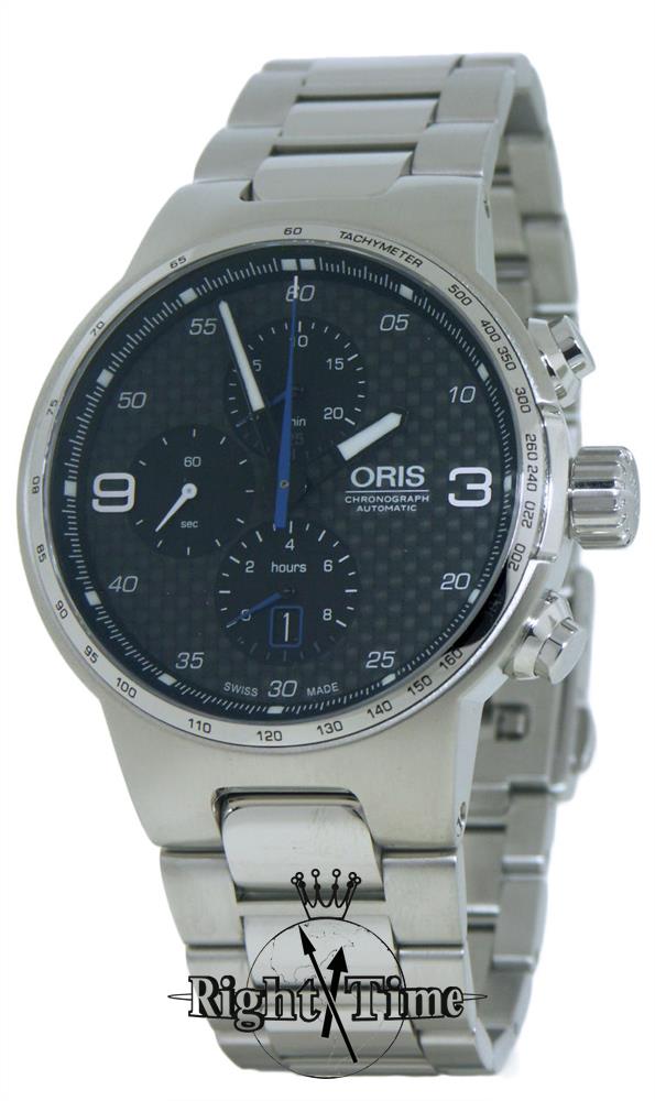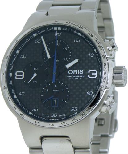 Oris Williams Chronograph model 0177477174154-0782450 Steel 44mm all stainless case and bracelet, with black carbon fiber dial. Swiss made automatic chronograph movement Sellita SW500 with date.