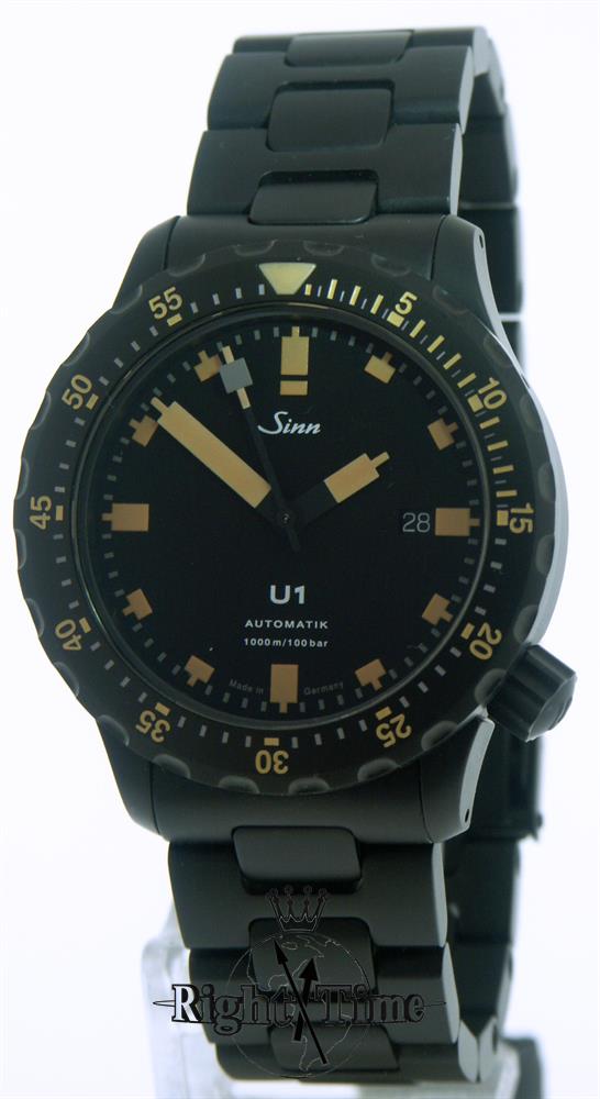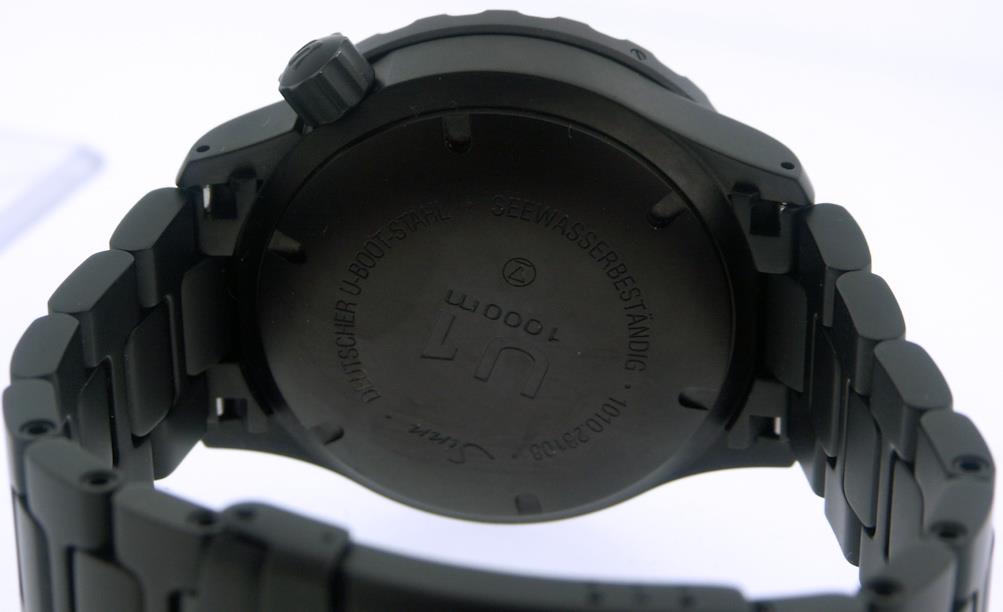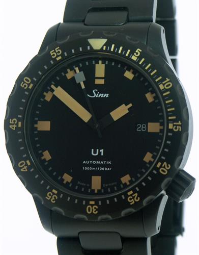 Sinn U1SE ultimate scuba diver 1000m model 1010.023, black hard Tegimented technology coating on German submarine steel case and metal bracelet. Powered by Sellita SW200 movement