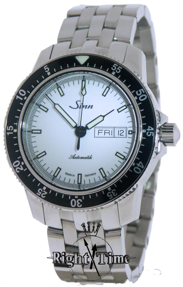 Sinn German pilot automatic sport model "104 ST SA" powered by Sellita SW220 Swiss made movement with easy to read white dial, all polished stainless steel 200m water resistant case, comfortable and dressy 5 link stainless steel bracelet