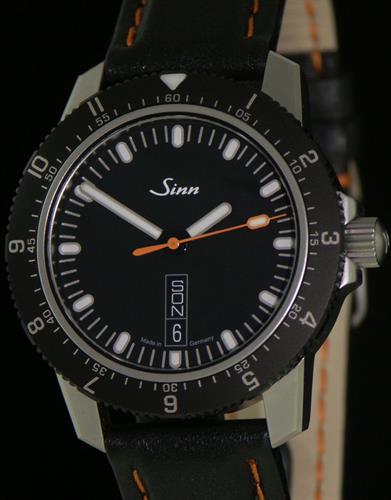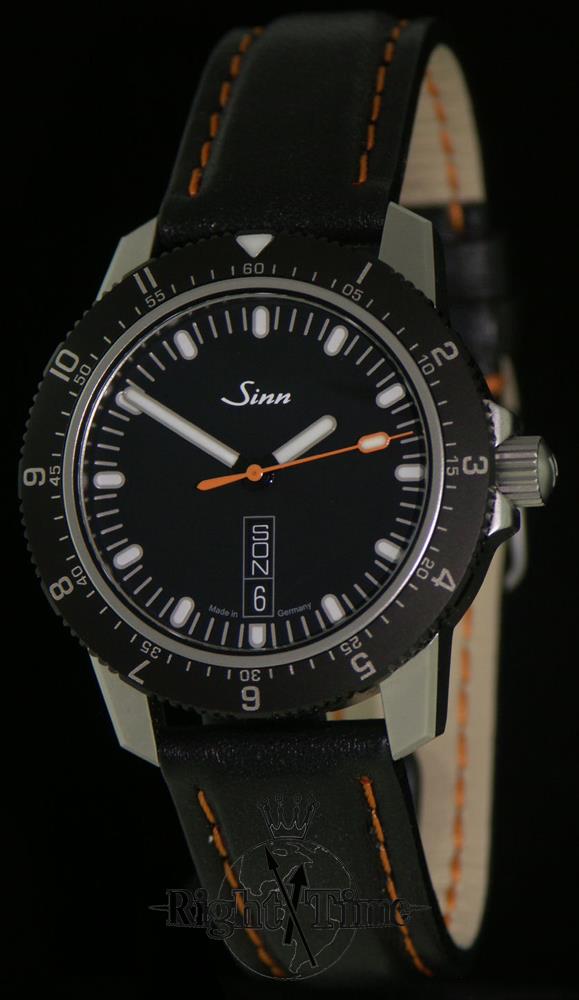Sinn German pilot automatic sport model 105 ST SA powered by Sellita SW220 Swiss made movement with easy to read black dial, sandblasted steel 200m case on black factory leather strap, duo-directional black bezel