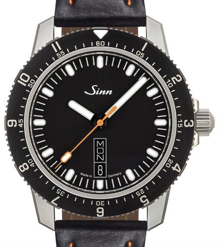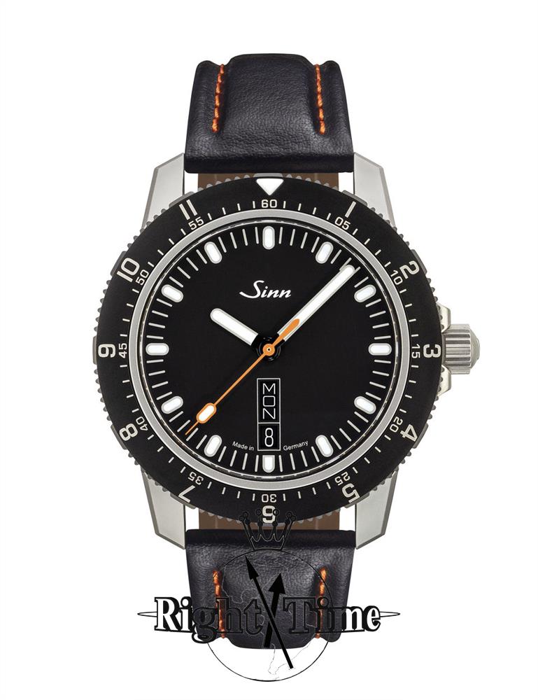 Sinn German pilot automatic sport model 105 ST SA powered by Sellita SW220 Swiss made movement with easy to read black dial, sandblasted steel 200m case on black factory leather strap, duo-directional black bezel.