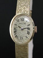 Merano watch powered by Japanese Mechanical Manually wound movement with 17 jewels (Seiko model # 11A). Oval 14KT gold case and watch bracelet. Production date circa 1980`s.