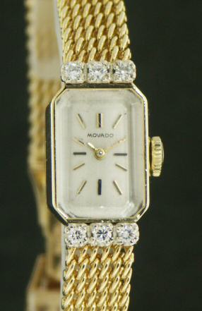 Very elegant and flexible Movado 14KT yellow gold case and band with 6 diamonds about .25ct total weight, with 17jewel Swiss manual wind movement.