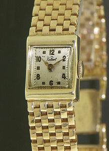 Swiss made, Kelbert 14KT solid yellow gold case and band with 17 jewels manual wind movement. Very comfortable bracelet fits `like a glove.` Very cute solid gold vintage watch.
