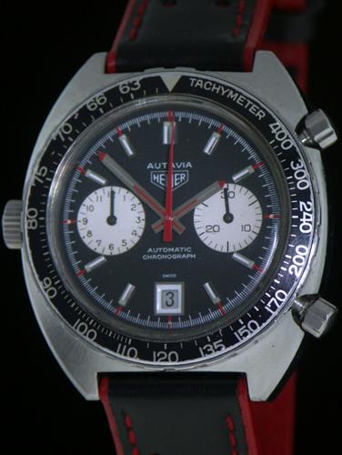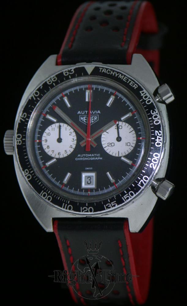 Huer "Autavia Viceroy" automatic chronograph with Heuer-Buren Caliber 12 movement, all steel unpolished case, rotating bezel