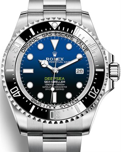 New for 2022 Rolex Oyster perpetual James Cameron D-Blue dial "Sea-Dweller DeepSea" professional scuba diver 3900m water resistant model 126660 equipped with scratch resistant Cerachrom ceramic bezel insert, powered by Rolex Cal.3225, blue luminous markers and hands and featuring Glidelock clasp system with Fliplock extension link, with box and all papers, 03/2022