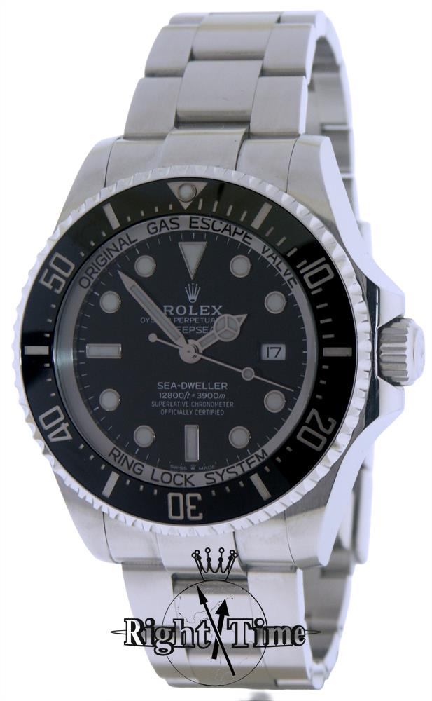 Rolex Oyster perpetual black dial "Sea-Dweller DeepSea" professional scuba diver 3900m water resistant model 126660 equipped with scratch resistant Cerachrom ceramic bezel insert, powered by Rolex Cal.3225, white luminous markers and hands and featuring Glidelock clasp system with Fliplock extension link