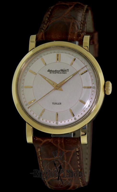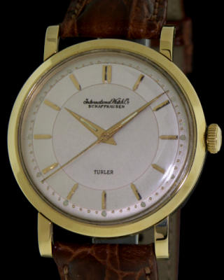 Classic timeless style of this 1955 "Ingenieur" by IWC with famous automatic IWC Calibre 852, designed by IWC engineer Pellaton and featuring his self-winding mechanism. This watch was originally made for Zurich famous "Turler" watch/jewelry store in Switzarland. Solid 18kt yellow gold case