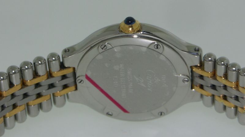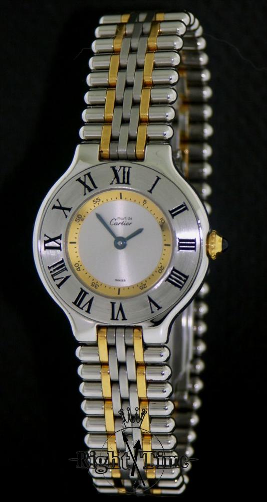 Ladies "Must de Cartier 21" model 1340, two tone combination of stainless steel with 18kt gold plated accents Swiss made quartz model, box and papers