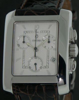 Gentlemens Concord "Sportivo" dress quartz chronograph model in solid polished stainless steel case with curved sapphire crystal on an alligator strap