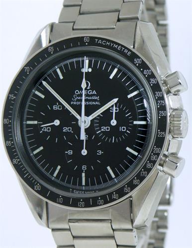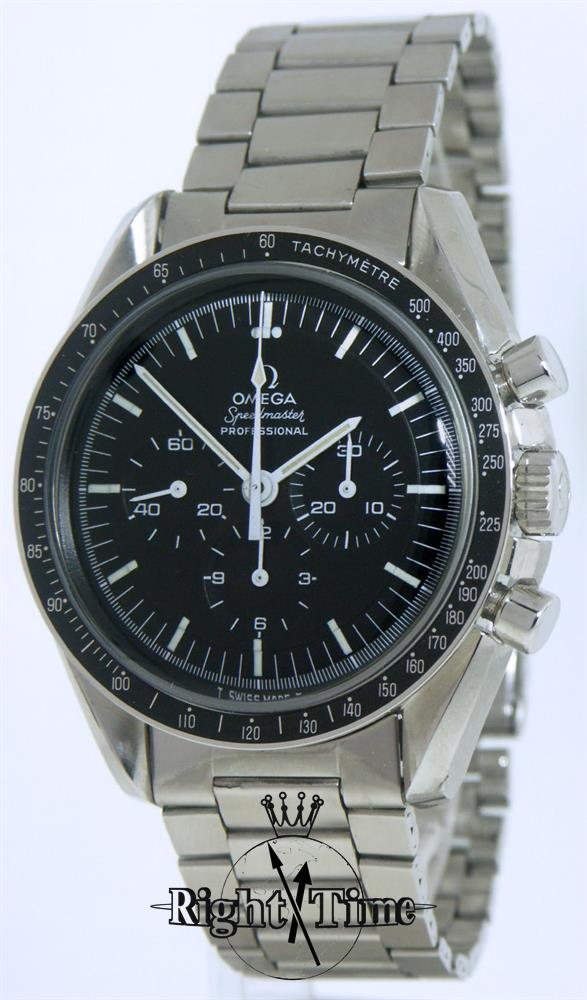 Historical Omega Speedmaster Original 42mm Moon watch with 17 jewels Omega manual wind Cal.861 from 1969. Black original factory dial and hour/minute hand. Original 69 factory metal bracelet