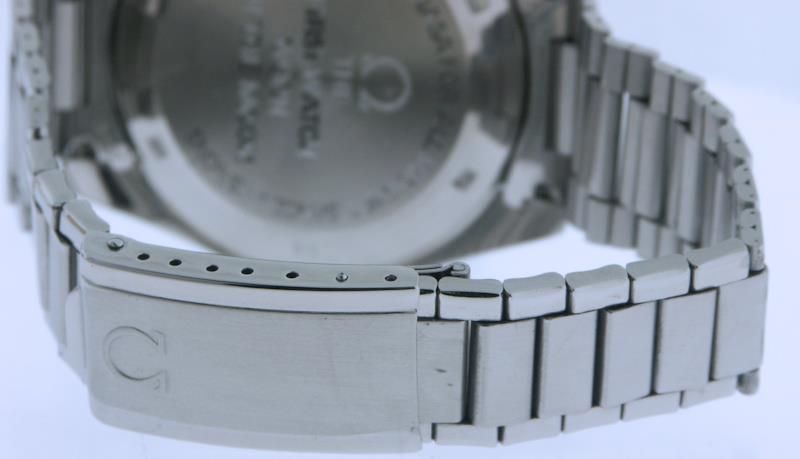 Combination satin/polished finish. Solid AISI 316L stainless steel. All factory links are in. Last 8 links are spring loaded on this Model 1039 Original Omega band.