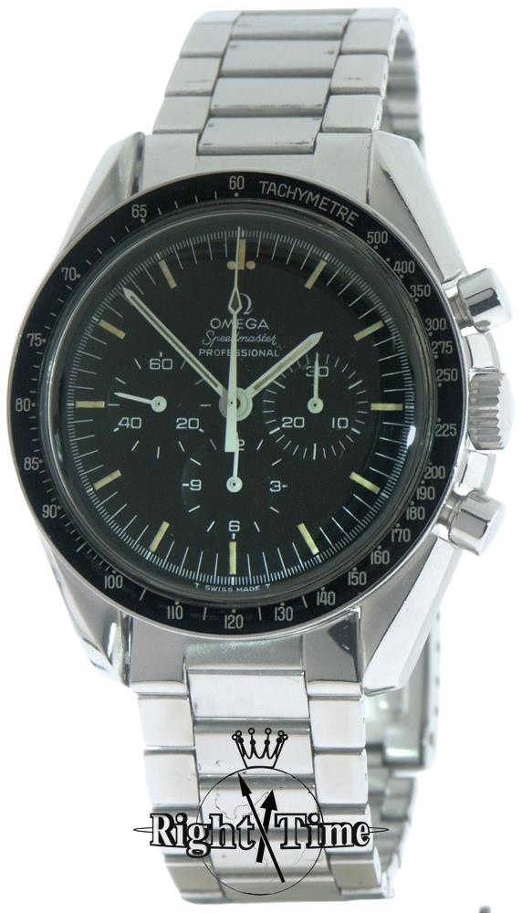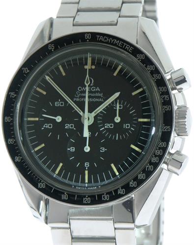 Omega Speedmaster Professional Moon model 140.022-69ST. Powered by famous Lemania Omega 861 manual-winding chronograph movement. Steel case with black Tachymetre scale on the bezel. Black original dial with 3 sub-dials, tritium luminous hands and markers, original 1039 factory metal bracelet