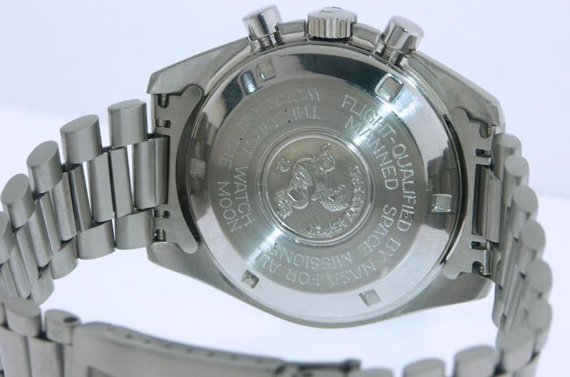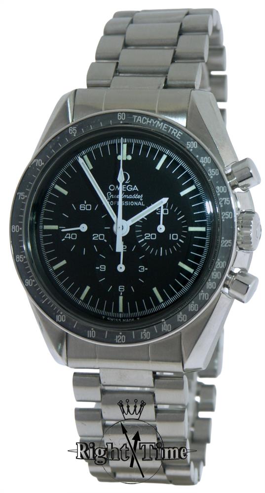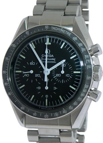 Omega Speedmaster Professional Moon model 140.022-76ST. Powered by famous Lemania Omega 861 manual-winding chronograph movement. Steel case with black Tachymetre scale on the bezel. Black original dial with seconds sub-dial, tritium luminous hands and markers, original 1171 factory metal bracelet