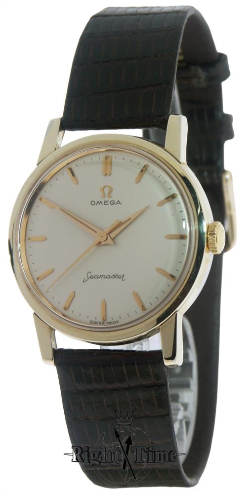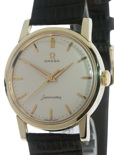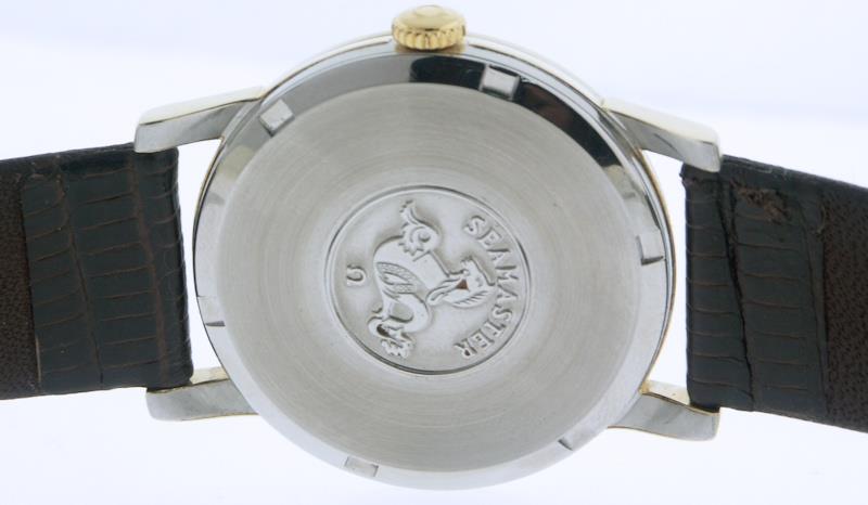 Omega Seamaster manual wind watch with Omega Cal.600 movement, stainless steel case with 14kt gold cap and bezel. Ivory dial with gilt applied markers.