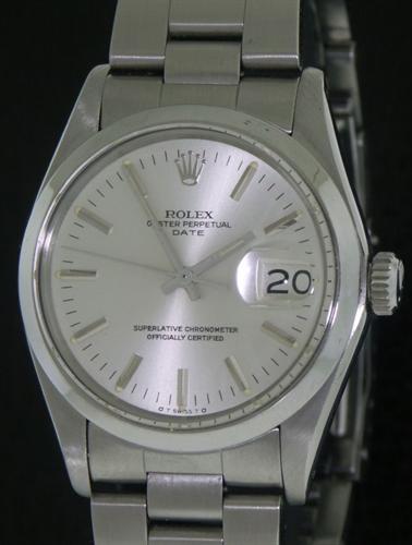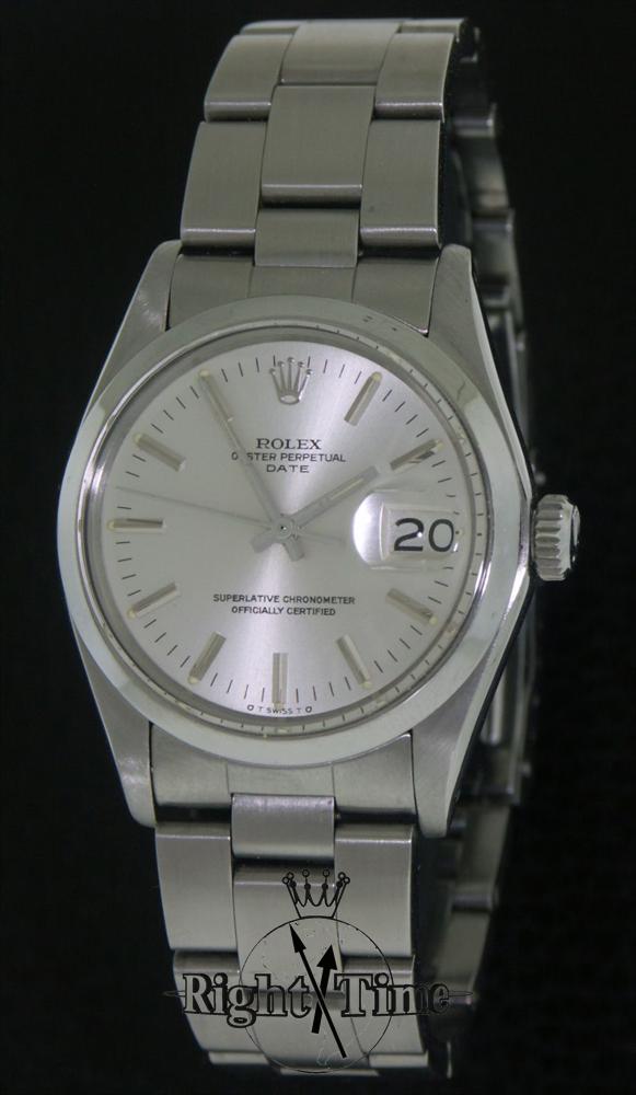 Swiss made Rolex classic "Date" 1500 model with original silver color dial, powered by famous 26 jewel Rolex Cal.1570 COSC movement, in steel case with oyster style steel bracelet.