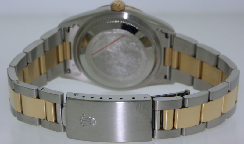 Oyster style links. Combination satin/polished finish. Solid Stainless steel and 18kt Gold combination.