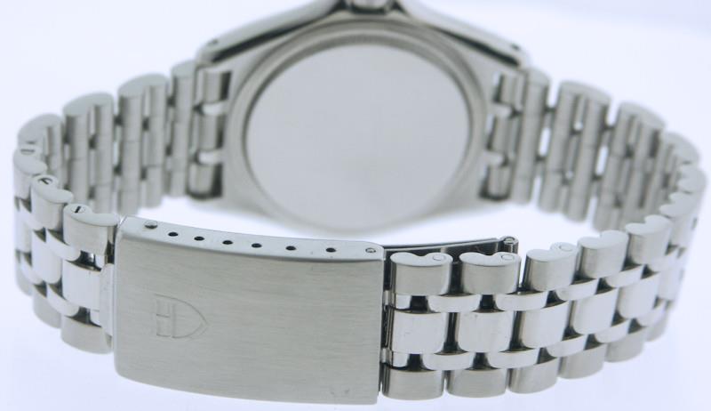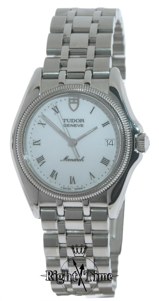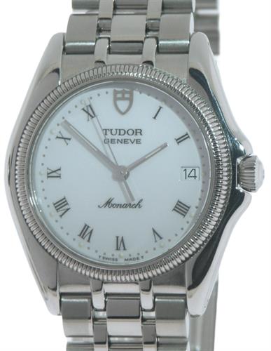 Tudor Monarch Swiss made quartz model 15730. All steel case and bracelet, coin edge bezel. White Roman dial