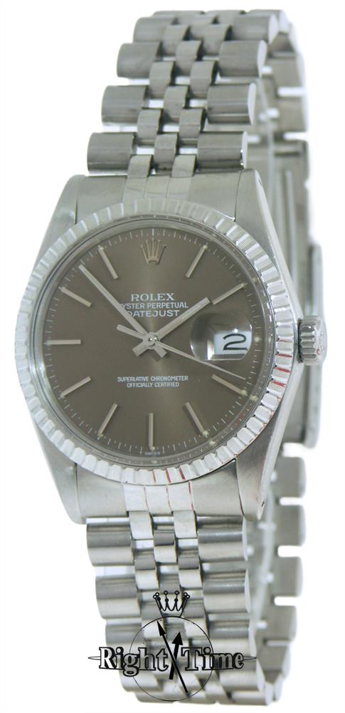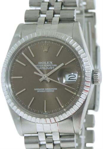 Rolex Oyster perpetual "Datejust". Rolex automatic COSC chronometer movement. Stainless steel case with 18kt fluted white gold bezel. Brown dial, steel hands and markers under a raised acrylic crystal. Jubilee style steel bracelet