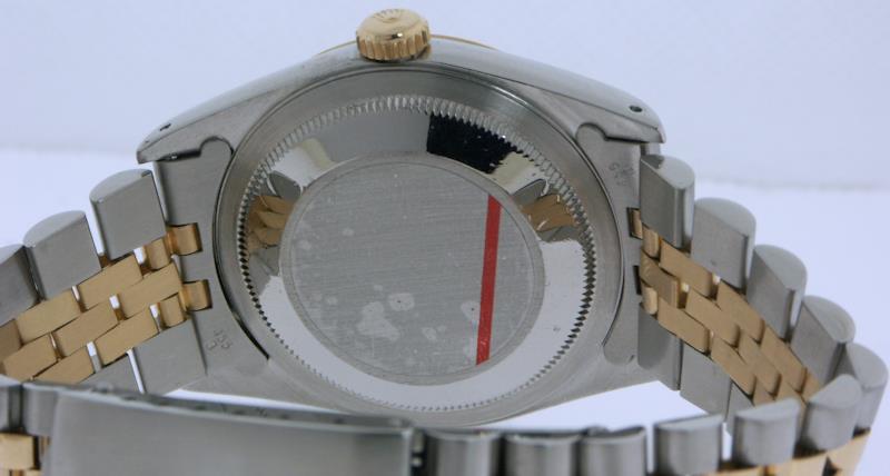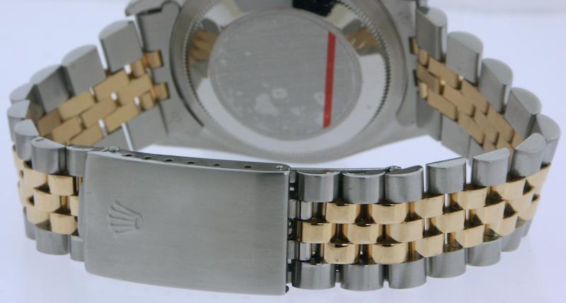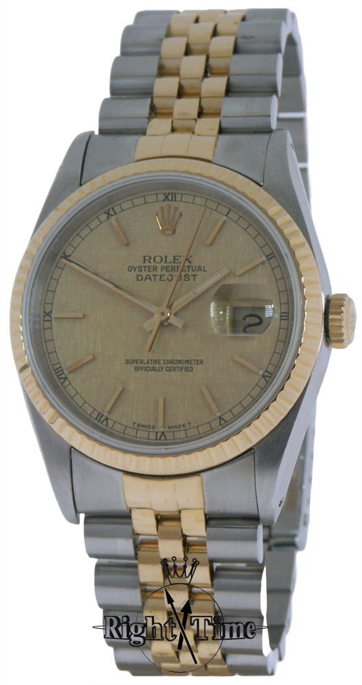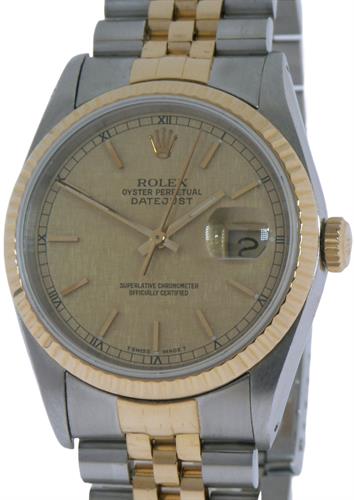 Rolex "DateJust" model 16233 18kt gold and steel with champagne color tapestry dial with applied markers, Jubilee style 18kt gold and steel band, with Rolex 31 jewels automatic 3135 movement