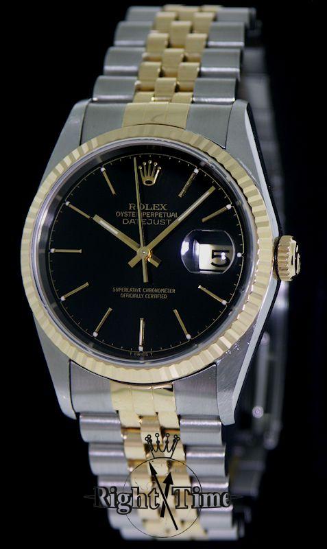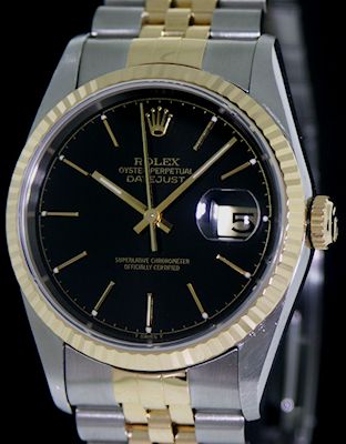 Rolex Datejust model 16233 18kt gold and steel with black dial, Jubilee style 18kt gold and steel band, with Rolex 31 jewels automatic 3135 movement, circa 1995