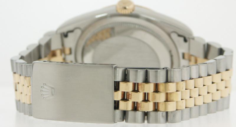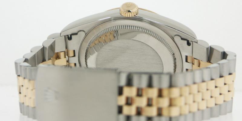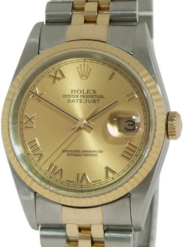 Rolex Datejust model 16233 18kt gold and steel with white color dial and applied Roman numerals, Jubilee style 18kt gold and steel band, with Rolex 31 jewels automatic 3135 movement