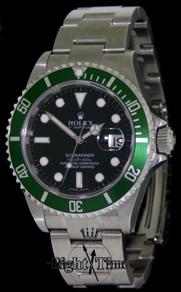Rolex Oyster Submariner 50th Anniversary Green Edition with date, NIB with factory box and papers and wrapped in factory plastics, style ref.16610LV with 31 jewels Rolex Cal.3135 automatic certified chronometer movement, all stainless steel case and band, original sold out model
