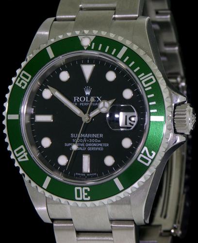 In 2003, Rolex celebrated the Submariner's 50th anniversary by launching the Rolex Submariner-Date anniversary edition 16610LV with distinguishing green bezel and Maxi dial, its production ended in 2010.
