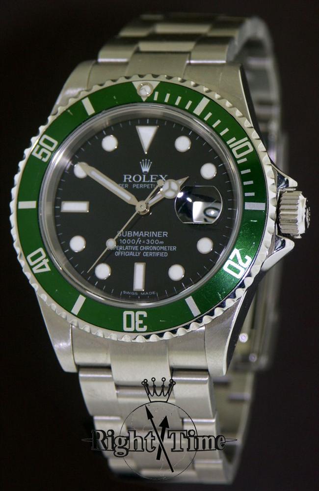 Rolex Oyster Submariner 50th Anniversary Edition with date, style ref.16610T, with 31 jewels Rolex Cal.3135 automatic certified chronometer movement, all stainless steel case and band with green bezel insert