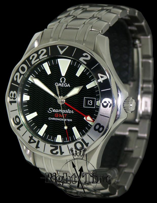 Omega Seamaster GMT Chronometer, with red GMT hand and 24 hour black and silver rotating bezel, stainless steel bracelet, certified chronometer 23 jewels Omega Cal.1128 automatic movement