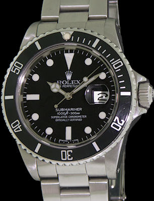 Rolex Oyster "Submariner" from "transitional" period, divers model with date ref.16800 with 27 jewels Rolex Cal.3035 automatic movement, all stainless steel case and bracelet. Serial Number 82872**