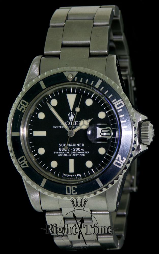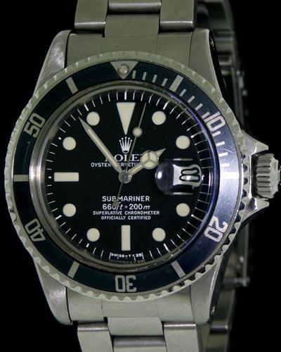 Historical Rolex Oyster Perpetual Date Submariner stainless steel model 1680 with black dial. Oyster style Rolex stainless steel bracelet with all links. Automatic movement Rolex Cal. 1570. Serial number 38698**. Box and papers, circa 1971