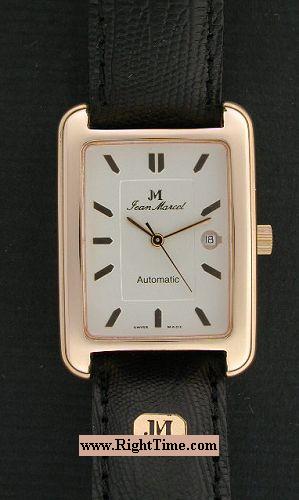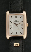 Classic tank style rose gold electroplated Jean Marcel automatic model powered by ETA Cal.2671-2 25 jewels Swiss made movement with date calendar, window display.