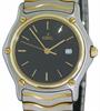 Mid-size 31mm Ebel gold and steel "Wave" ultra thin dress quartz model, with satin finish steel case and 18kt solid gold bezel, black dial with applied gold hour markers