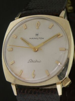 First electronic watch made by American Hamilton this Electric Cal.505 is encased in 10kt yellow gold filled case with original factory silver color dial.