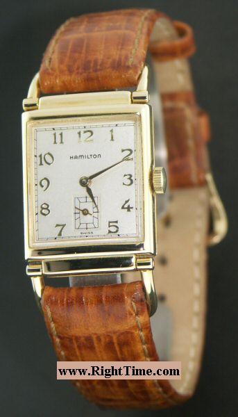 The Hamilton Wilshire was praised as "thin like a waver - smart as tomorrow" and is an interesting design with flexible lugs. Hamilton Swiss Quartz Wilshire model registered edition, 18kt gold electroplated case and back