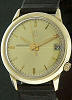 Accutron dress watch with Model 2181 tuning fork "humming" movement in 14kt yellow gold filled case and dark champagne dial