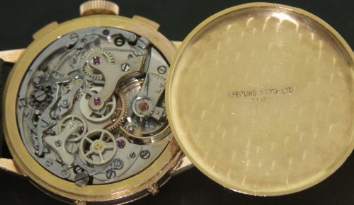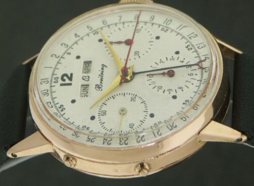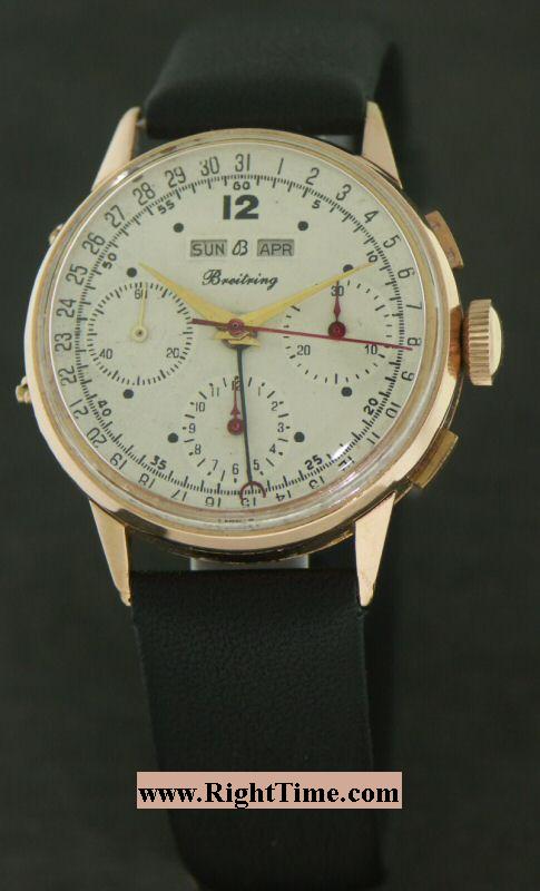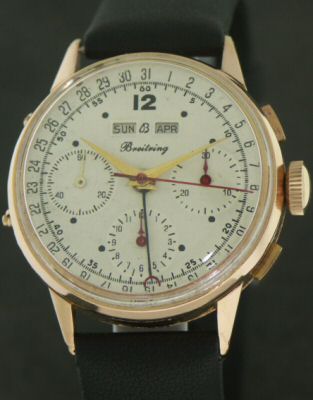 Breitling tripple date calendar, manual wind Valjoux 72C chronograph, inside solid 18kt rose gold case.
