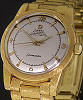 Omega Seamaster automatic with Omega Cal.352 bumper style movement in 18kt heavy solid yellow gold case, silver satin dial with gilt applied markers. 18kt yellow gold watch bracelet and clasp. Hand Bark finish on case and bracelet - a one-of-a-kind masterpiece