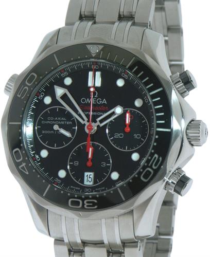 Omega "Seamaster" automatic chronograph 212.30.42.50.01.001 powered by beautifully executed column wheel Omega Cal.3330A with a co-axial escapement and silicone hairspring. Black dial and black ceramic bezel. 300m water resistant