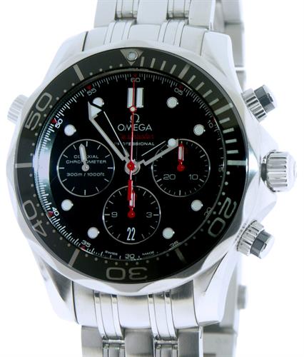 Omega "Seamaster" automatic chronograph 212.30.44.50.01.001 powered by beautifully executed column wheel Omega Cal.3330 with a co-axial escapement and silicone hairspring. Stainless steel case & bracelet. Black dial and uni-directional black ceramic bezel. Sapphire crystal. 300m water resistant