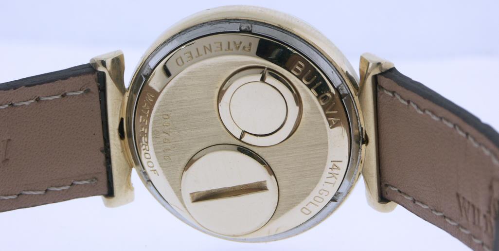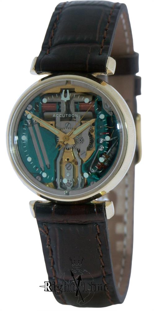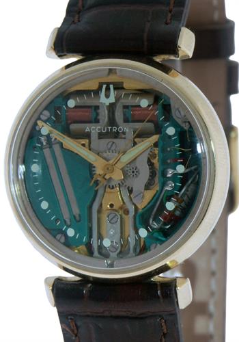 Bulova Accutron tuning fork model 214 "SpaceView" execution style in 14kt solid yellow gold case with 14kt gold caseback