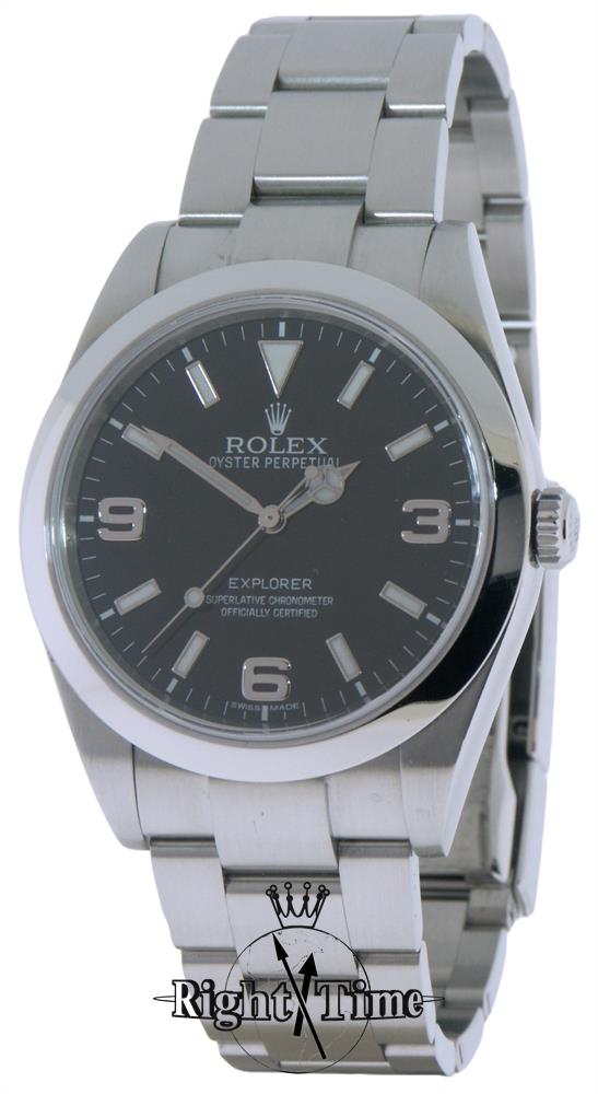 Rolex Oyster `Explorer I` Certified Chronometer black Arabic/Markers dial, all stainless steel case and oyster style bracelet, with box and papers, 2015