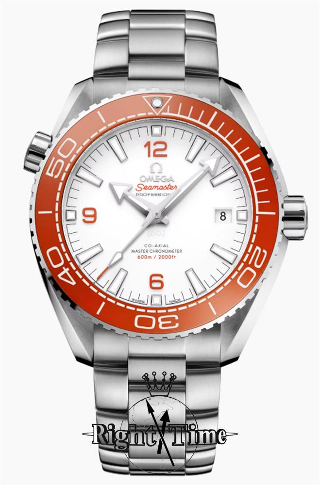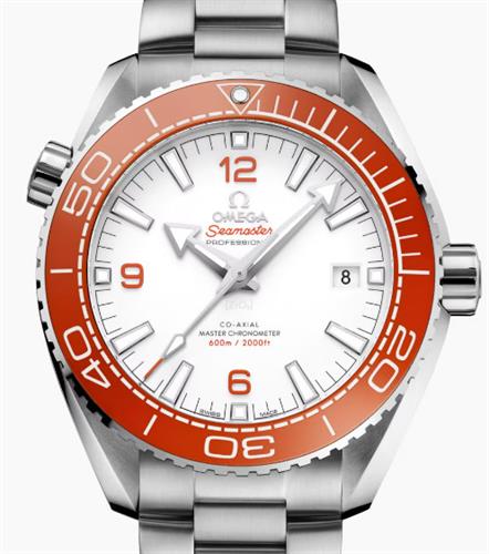 Omega Seamaster "Planet Ocean" 215.30.44.21.04.001 professional divers 600m model in 43.5mm stainless steel case with white dial and orange numbers, rotating bezel with orange ceramic bezel insert, powered by automatic Co-Axial Omega Calibre 8900, box and papers