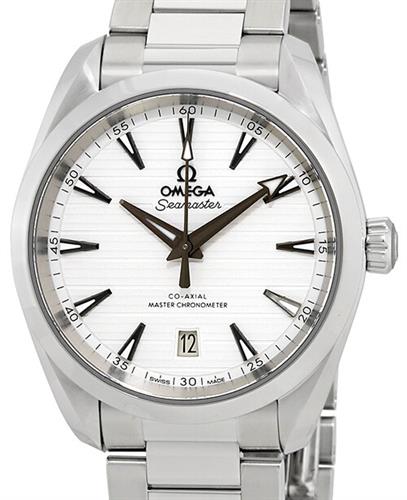 Omega Seamaster Aqua Terra factory model 220.10.38.20.02.001. The Omega caliber 8800 automatic Co-Axial movement is beautifully decorated and visible under the sapphire observation crystal caseback. All stainless steel case and oyster style bracelet. Unique teak pattern silver-white dial. Water resistant to 150 meters. Sapphire anti-glare coated crystal.