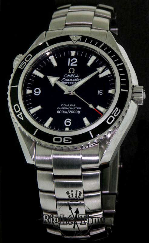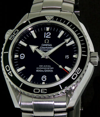 Omega Seamaster "Planet Ocean" 2200.50.00 extra large 45mm professional divers 600m model with black rotating bezel and white matching numerals on bezel insert and dial, powered by automatic Co-Axial Omega Calibre 2500, box and papers