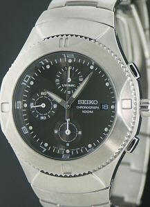 12 hr, 60 min, 60 sec, 1/20 sec. registers chronograph. Date calendar, window display.