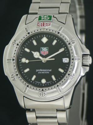 Very clean sturdy divers 200m water resistant Tag Heuer "4000" with ETA Swiss quartz movement, sapphire crystal and solid stainless steel case with sport clasp