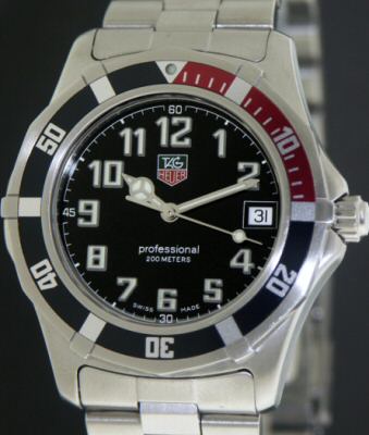 Swiss made quartz Tag Heuer "2000" series, professional 200m divers model with black dial and extra large luminous numbers in brand new condition with box and papers
