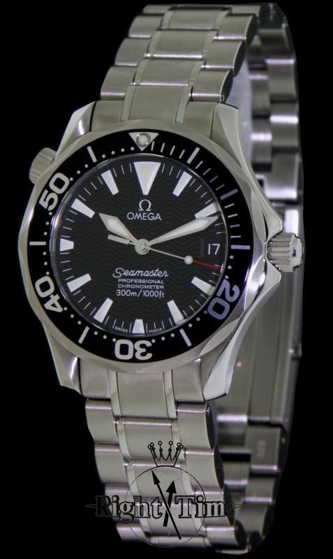 Famous Omega Seamaster "James Bond" style with black waive pattern luminous dial and black rotating diver bezel insert, housed inside 36.5mm stainless steel case and powered by COSC Omega Calibre 1120. Never worn with all tags and plastics